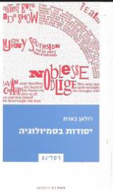 הספר “יסודות בסמיולוגיה” מאת רולאן בארת, ספר עיון מרתק שיצא לאור בשנת 2006 בהוצאת רסלינג, הספרייה שלנו מכילה אלפי כותרים מרתקים – הזמינו עכשיו!